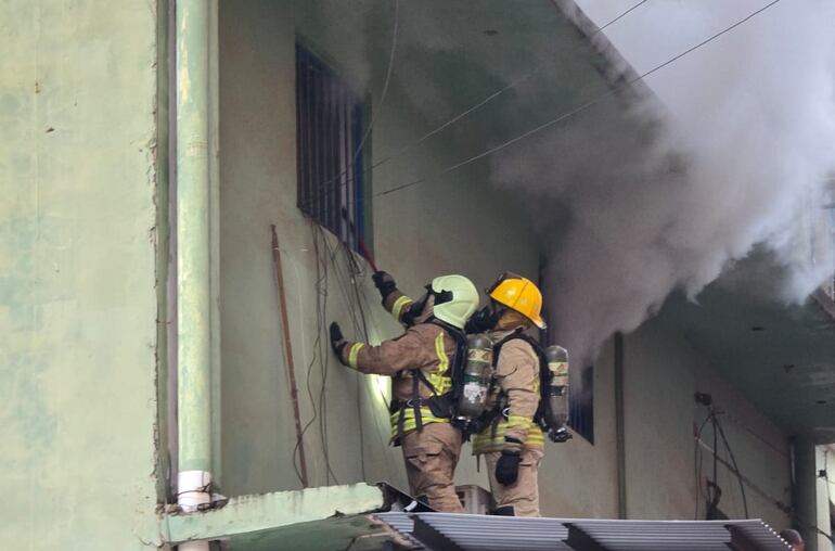 En el edificio de cinco pisos están combatiendo el fuego personal del Cuerpo de Bomberos Voluntarios de Ciudad del Este, con apoyo de otras compañías.