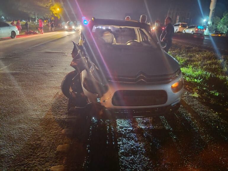 El otro vehículo involucrado es de la marca Citroën C4 Cactus, modelo 2023, color gris aluminio, con chapa Nº AALD430, conducido por Pedro Milciades Mora Monin (64), domiciliado en Santa Rita.