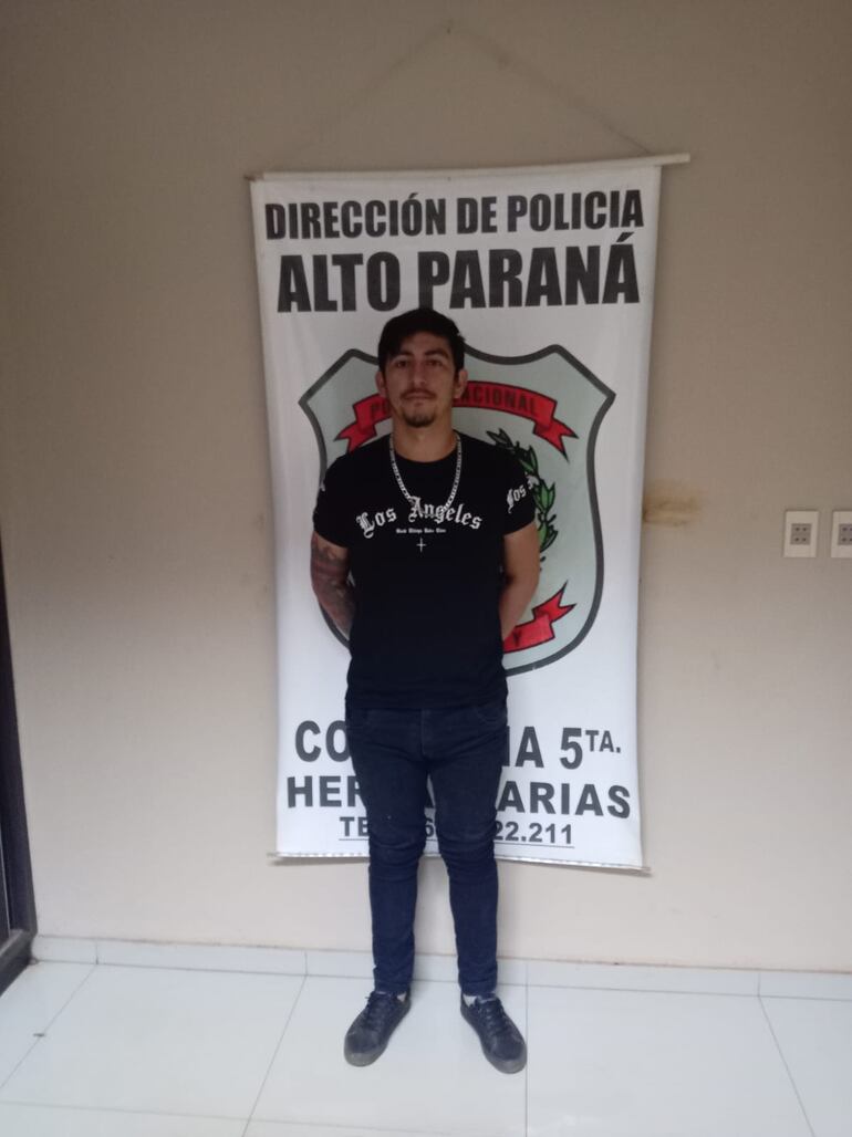 El procedimiento fue realizado esta tarde, a las 18:00 aproximadamente, en el predio de la Iglesia San Carlos, tras una alerta de vecinos que reportaron la presencia de un joven en actitud sospechosa. El detenido fue identificado como Juan Ramón Villalba Barrientos (29 años), domiciliado en el barrio Santa Librada de la ciudad de Itakyry.