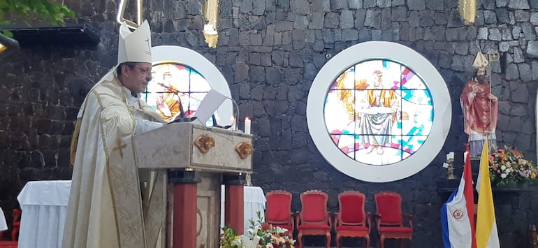 Monseñor Pedro Collar, obispo de Ciudad del Este, durante el rezo del Ángelus. TEREZA FRETES