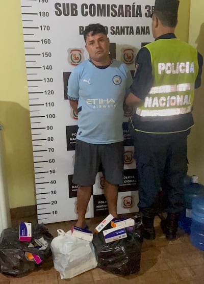 De su poder se incautaron tres bolsas de polietileno que contenían medicamentos de distintas marcas, denunciados como hurtados horas antes de una sucursal de la firma de Ciudad del Este.