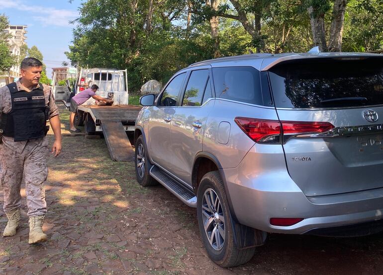 Los uniformados localizaron una camioneta Toyota Fortuner SRV 2.8, color plata, año 2018, que se encontraba abandonada en la vía pública con las puertas desbloqueadas.
