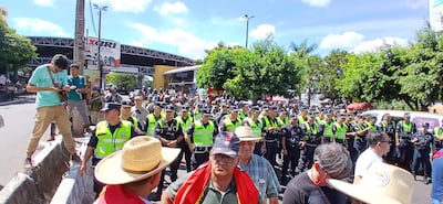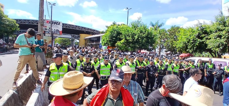Un contingente policial los esperaba en la entrada de la zona primaria, impidiendo que avanzaran hacia el puente. Sin embargo, la Ruta PY02 permaneció totalmente bloqueada por algunos minutos, lo que afectó tanto la entrada como la salida del país por dicha arteria. Los que transitaban por la avenida Luis María Argaña sí pudieron salir sin del país.