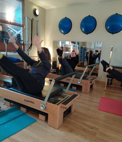 Además, conocemos, por nuestra profesión, el movimiento del cuerpo. En mi caso, el ballet me ha aportado la conciencia del dinamismo, el movimiento, la coreografía, incluso. Para mí no se trata de solo de la ejecución puntual de unos ejercicios concretos, mecánicamente, sino también -y no lo puedo evitar- les tengo que aportar algo más.... esa cadencia que tiene el movimiento natural del cuerpo. Todo es ¡movimiento! Yo no entiendo una clase de Pilates si no está mínimamente coreografiada, con sus tiempos, con su ritmo, con sus: ¡acentos!... A la gente le encanta.