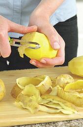 Esto es lo que sucede con el sencillo y práctico utensilio que nos ayuda a pelar. Un instrumento de cocina compuesto por un mango y una hoja de cortar móvil capaz de adaptarse a los contornos de frutas y verduras de piel dura, para quitarles la piel o ser laminadas de manera rápida, segura y conservando a su vez el máximo de pulpa. Este pelador puede triplicar la velocidad de pelado sin riesgo de cortarnos los dedos.