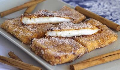 Estas porciones se rebozan en harina y huevo batido y se fríen en aceite caliente. Se sirven como postre, templadas o frías, espolvoreadas con azúcar y canela, y se pueden bañar también con una salsa de caramelo.