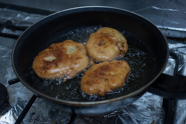 - Batir el huevo y agregar a la preparación mezclando muy bien. Formar unas tortillas y rebozarlas en la masa de tortilla.