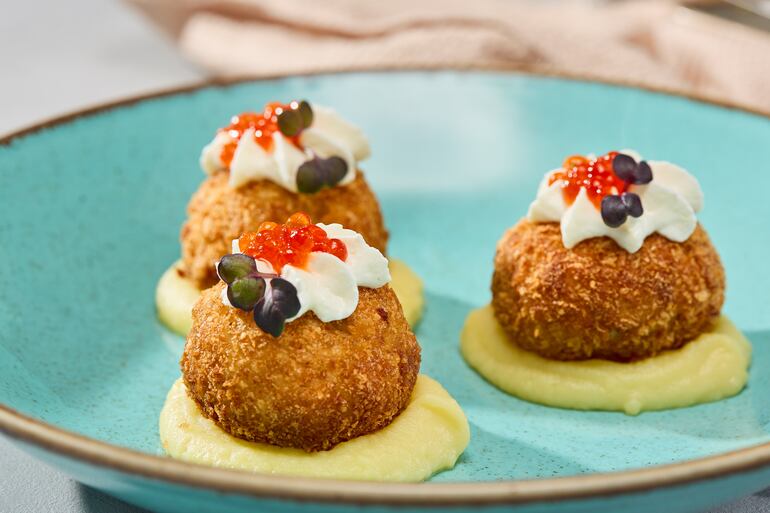 - Humedecer las manos. Tomar una porción de puré (aproximadamente 100 gramos), aplanar en la palma, colocar 1–2 cucharadas de relleno y cerrar formando óvalos firmes.