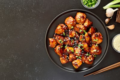 - Verter la marinada reservada sobre el pollo y cocinar a fuego medio hasta que la salsa espese y el pollo esté bien glaseado.