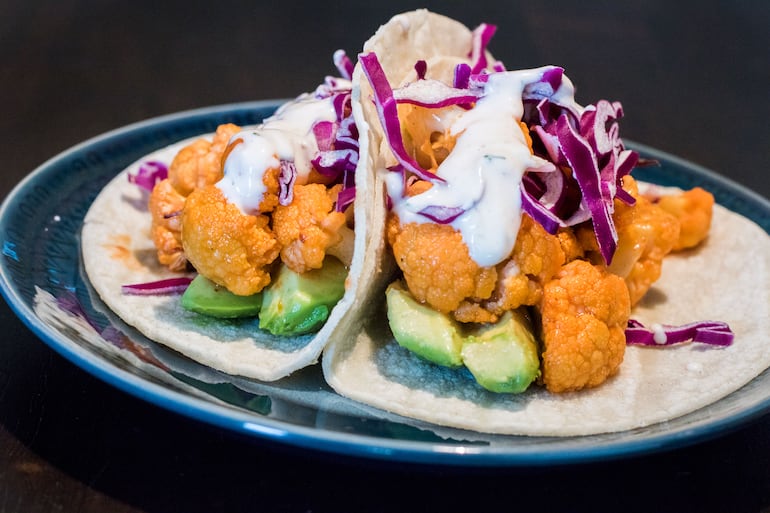 - Armar los tacos con la coliflor, la ensalada y el cilantro.