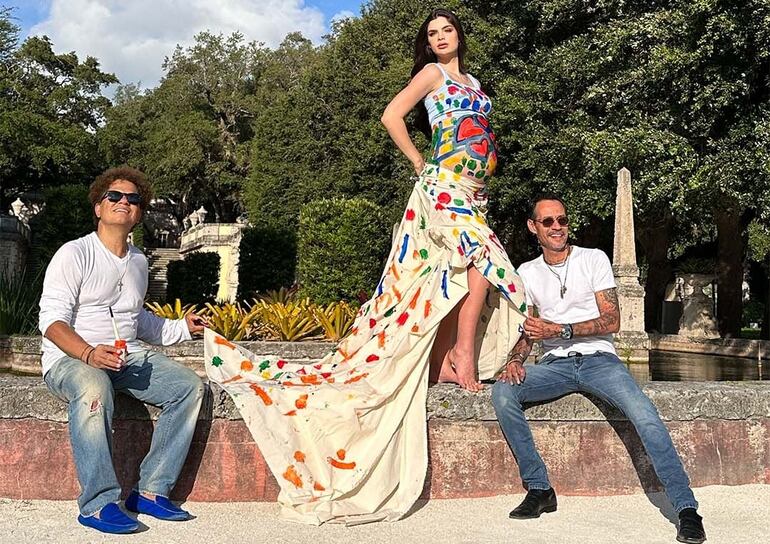 La panza de Nadia Ferreira hoy se convirtió en el lienzo del brasileño Romero Britto, uno de los artistas más reconocidos del arte contemporáneo. Y fue Marc Anthony quien compartió la postal donde se lo ve junto a la villarriqueña y el pintor, tras realizar la obra de arte sobre el vientre que lleva a su séptimo hijo.