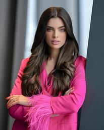 Con un look que combina plumas y satín, Nadia Ferreira se mostró divina enfundada en un traje color rosa y se convirtió en la verdadera reina del Barbiecore.