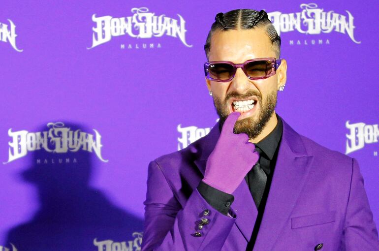 A su paso por la alfombra morada, en la antesala de la “listening party” a la que asistieron invitados de la industria discográfica, celebridades e influenciadores, el artista urbano Maluma, de 29 años, deslumbró vestido completamente de púrpura con el cabello trenzado y encarnando el personaje que construyó con un toque de rudeza y su estilo particular.