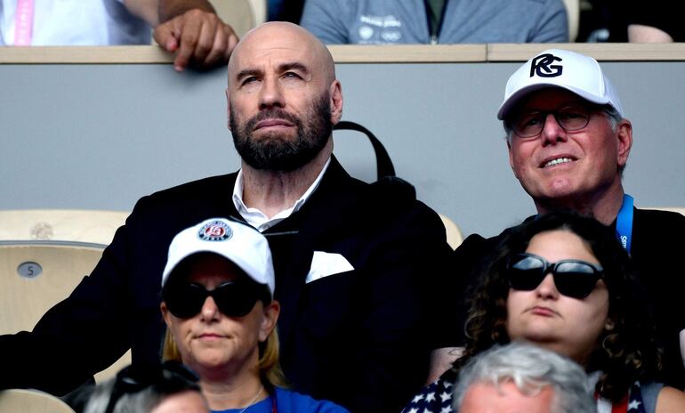 John Travolta observa a Carlos Alcaraz de España en acción contra Novak Djokovic de Serbia durante el partido por la medalla de oro masculina individual de las competiciones de tenis de los Juegos Olímpicos de París 2024, en Roland Garros en París, Francia.ETTORE FERRARI