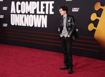 El actor Timothée Chalamet llegando a la premier del biopic de Bob Dylan "A Complete Unknown" en el Dolby Theatre en Hollywood, California.053012+0000 MICHAEL TRAN