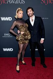 Paris Hilton y Michael Atmore llegando a los premios WWD Style Awards 2026 presentados por Women's Wear Daily en Regent Santa Mónica Beach. (Amy Sussman/Getty Images/AFP)