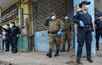 El ministro de Gobernación (Interior), Marco Antonio Villeda (i), habla junto al director del Sistema Penitenciario, Jorge Guillermo López (2-i); los viceministros de Gobernación (Interior), Estuardo Solórzano (3-i) y Víctor Cruz (2-d), y el director general adjunto de la Policía Nacional Civil, Héctor González Prera (d), durante una rueda de prensa este sábado, en Ciudad de Guatemala (Guatemala).