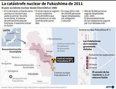 Los avances hacia el desmantelamiento de la planta, que se prolongará al menos hasta mitad de siglo, siguen en fase inicial, mientras que un 2,4% de la superficie de la prefectura, la tercera mayor de Japón, sigue designada como “zona de difícil retorno” y más de 36.000 personas continúan desplazadas.