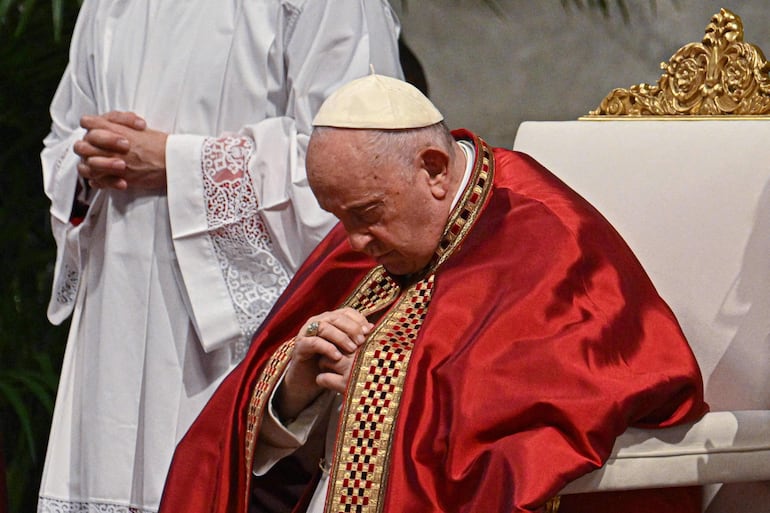 El papa, que este viernes tuvo que suspender la agenda por tener fiebre, retomó ayer sábado sus actividades y hoy presidió, sentado en un lado del altar, esta celebración en la que los católicos conmemoran la venida del Espíritu Santo sobre los apóstoles.