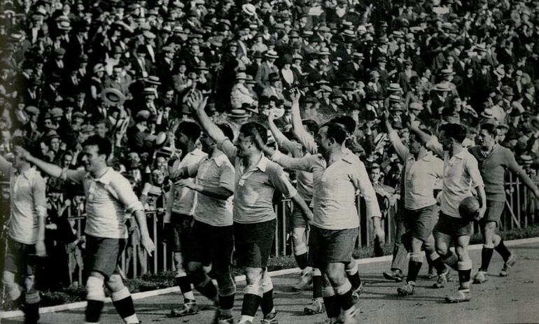 Tras el partido, la audiencia celebra el triunfo y arrojan sus sombreros en el campo de juego. Los uruguayos agradecieron dando una vuelta al terreno de juego para saludar al público, y en ese momento se originó la primera Vuelta Olímpica de la historia.