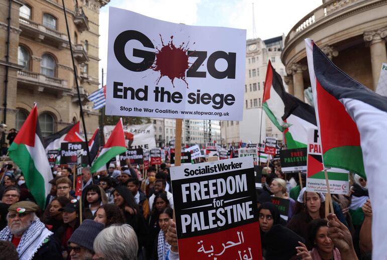 Las imágenes que recorren la red social X (antes Twitter) muestran a miles de manifestantes coreando frases a favor del pueblo palestino que hoy debió huir del norte de Gaza ante el aviso de las fuerzas de Israel que lanzaría un ataque masivo contra el grupo radical palestino en esa zona. Se estima en menos de 24 horas alrededor de un millón de personas se desplazaron hacia el sur del enclave.