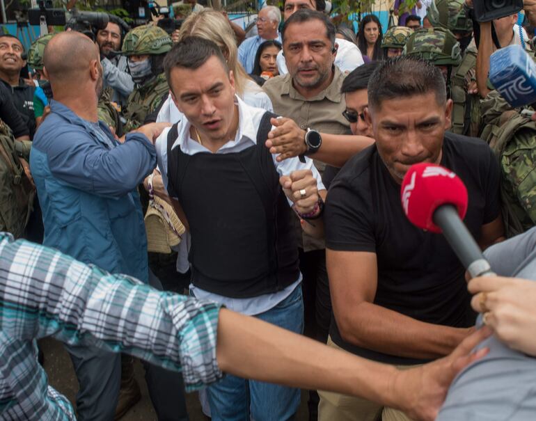 Lo hizo a la salida de un colegio electoral en la comuna de Olón, de la provincia costera de Santa Elena, hasta donde llegó con chaleco antibalas y en medio de un fuerte resguardo militar, que lo cercó desde que se bajó de su vehículo hasta que se volvió a subir minutos después de votar.