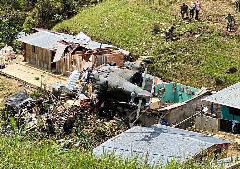 Este artículo tiene 2 años de antigüedad BOGOTÁ. Al menos cinco militares y dos civiles resultaron heridos este domingo en Colombia después de que un helicóptero del Ejército que se encontraba realizando operaciones militares cayera sobre una casa en un sector del municipio de Anorí, en el departamento de Antioquia.