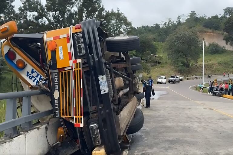 El bus, con 70 pasajeros, volcó y colisionó contra una valla el sábado tras “perder la dirección” en el Puente Mancera, ubicado en el municipio de Matagalpa de Nicaragua a unos 130 kilómetros al norte de Managua, dijo la vicepresidenta de ese país Rosario Murillo en el medio oficialista Canal 4 de la televisión local.