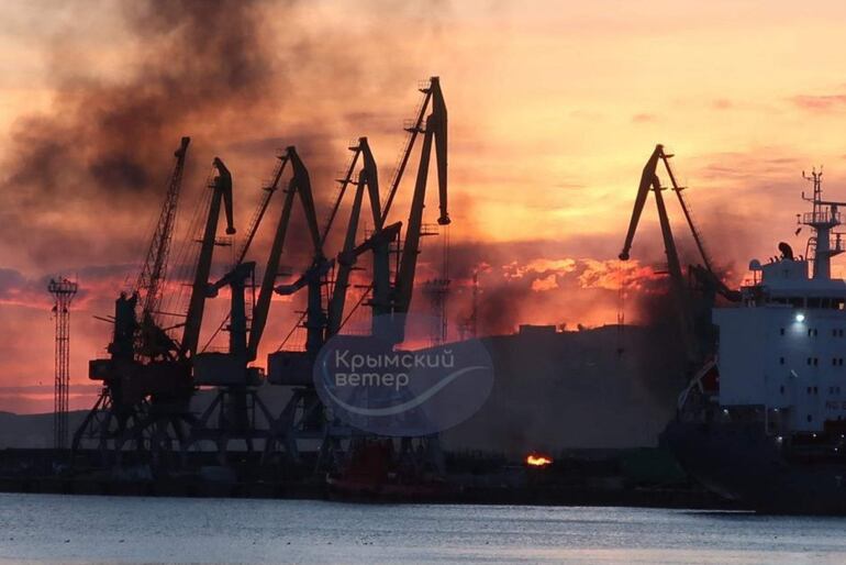 Moscú reconoció el martes que uno de sus buques resultó dañado en un ataque en el puerto de Feodosia, que, según el gobernador Serguéi Aksionov, dejó un muerto y dos heridos.