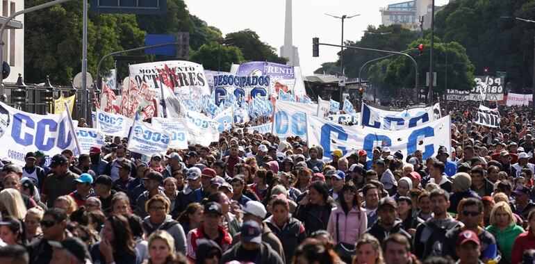 Cerca de las 11:00 (hora argentina), las columnas de manifestantes empezaron a cortar de forma total la avenida 9 de Julio esquina Moreno, donde se instalaron agrupaciones de la Unidad Piquetera.