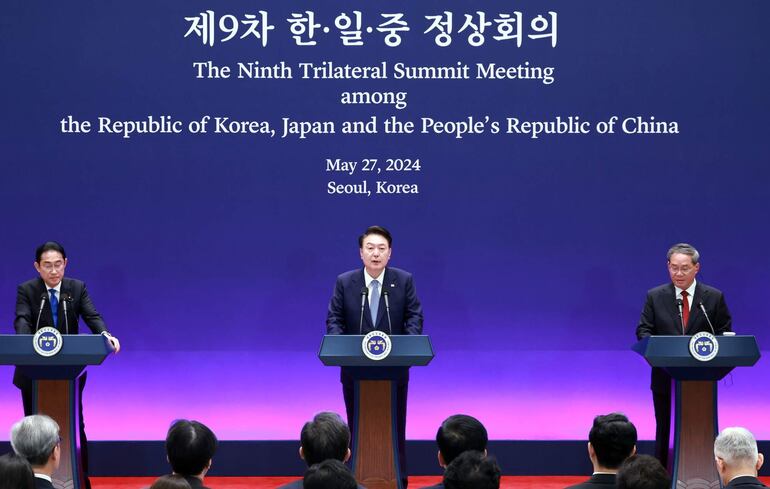 El presidente surcoreano Yoon Suk Yeol y los primeros ministros Li Qiang, de China, y Fumio Kishida, de Japón, celebraron el lunes la primera cumbre entre los tres países en casi cinco años, en parte debido a la pandemia pero también a relaciones otrora deterioradas.