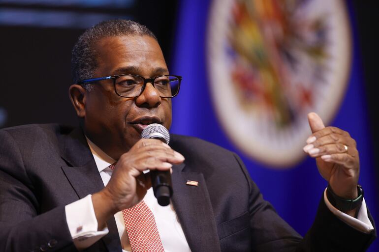 “La lucha contra el crimen transnacional es algo clave para todos los pueblos de la región; obviamente, queremos una región pacífica, tranquila, donde haya oportunidad para todos”, afirmó Brian Nichols, durante un Diálogo de Alto Nivel (DAN) con el ministro de Relaciones Exteriores de Paraguay, Rubén Ramírez, como parte del XIV Foro del Sector Privado de las Américas, celebrado en la jornada previa a la inauguración de la Asamblea General de la OEA en Paraguay.