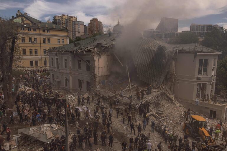 Según el alcalde, Vitali Klichkó, este martes se encontraron los cuerpos de cuatro personas bajo los escombros de ese edificio.