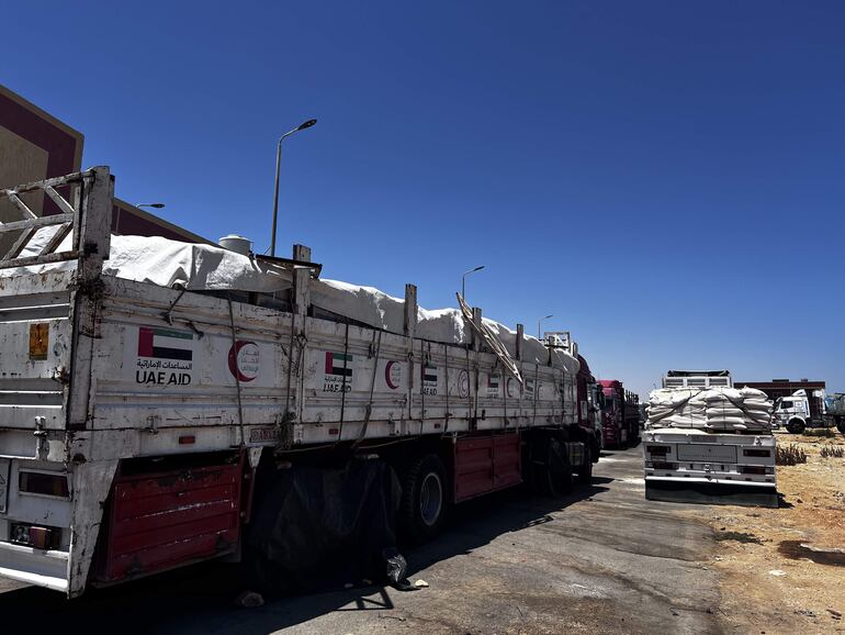 Estos transportistas siguen un día más a pie de camión para entregar la ayuda mientras las delegaciones mediadoras de Estados Unidos, Catar y Egipto esperan reunirse este miércoles en Doha en unas conversaciones indirectas con las partes en conflicto para cerrar las brechas en la propuesta de tregua en Gaza tras meses de negociaciones y más de 38.000 palestinos muertos en la Franja.