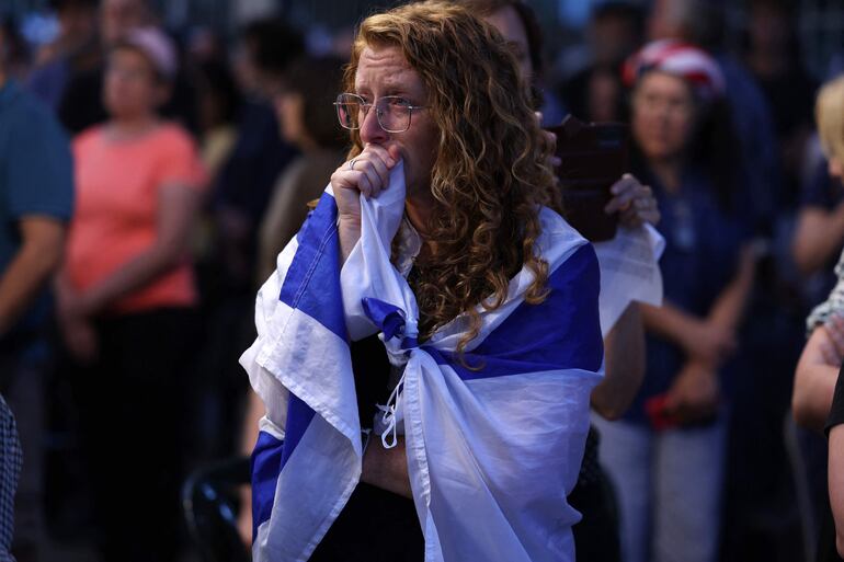 "¡Seis de nuestros hermanos regresaron en bolsas para cadáveres! ¡Detengan el abandono! ¡Hagan un acuerdo (de tregua con Hamás) ahora!", clamaban los manifestantes, secundados por los principales líderes de la oposición.