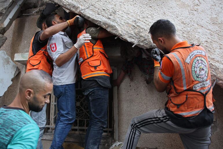 "Otras cinco personas aún se encuentran bajo los escombros", detallaron los equipos de Defensa Civil, que realizan las labores de rescate en la Franja, en un comunicado.