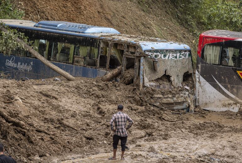 "Un autobús y dos microbuses fueron encontrados enterrados en el corrimiento de tierra. La policía ha estado recuperando los cuerpos desde el domingo por la mañana", dijo.