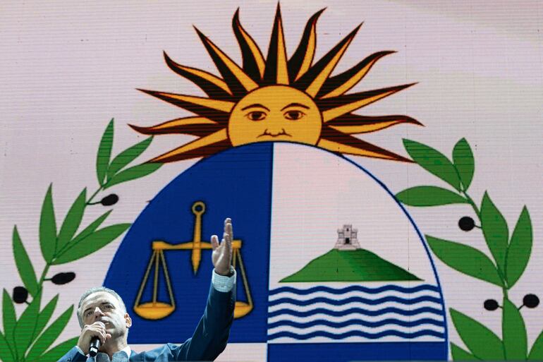 “¿Saben quiénes nos van a elegir el 24 (de noviembre)?”, preguntó en un acto en el Obelisco de Montevideo en el que todos los líderes de los partidos socios de la coalición gobernante, que respaldan su candidatura, estaban presentes.