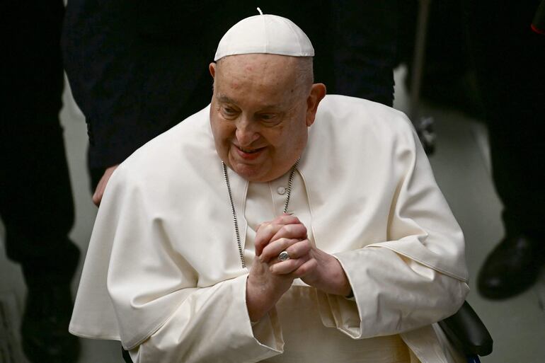 Francisco explicó al inicio de la audiencia que sigue con bronquitis y, aunque comenzó a leer la catequesis prefirió no seguir e instó a que un colaborador continuará con la lectura.