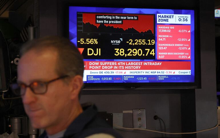 En la plaza neoyorquina, el índice industrial Dow Jones perdió un 5,50%, el tecnológico Nasdaq se derrumbó un 5,82% -una caída del 22% desde su récord de diciembre- y el ampliado S&P 500 cedió un 5,97%, su peor jornada bursátil desde la pandemia de covid-19 en 2020.