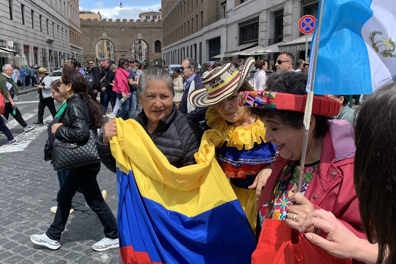 “Le doy gracias a Dios por haberlo llevado a reposar. Es una gran tristeza pero dándole gracias al señor por ello. El papa era uno de nosotros”, dijo a EFE Raquel Quiroga, de Colombia, vestida con una pollera colombiana.