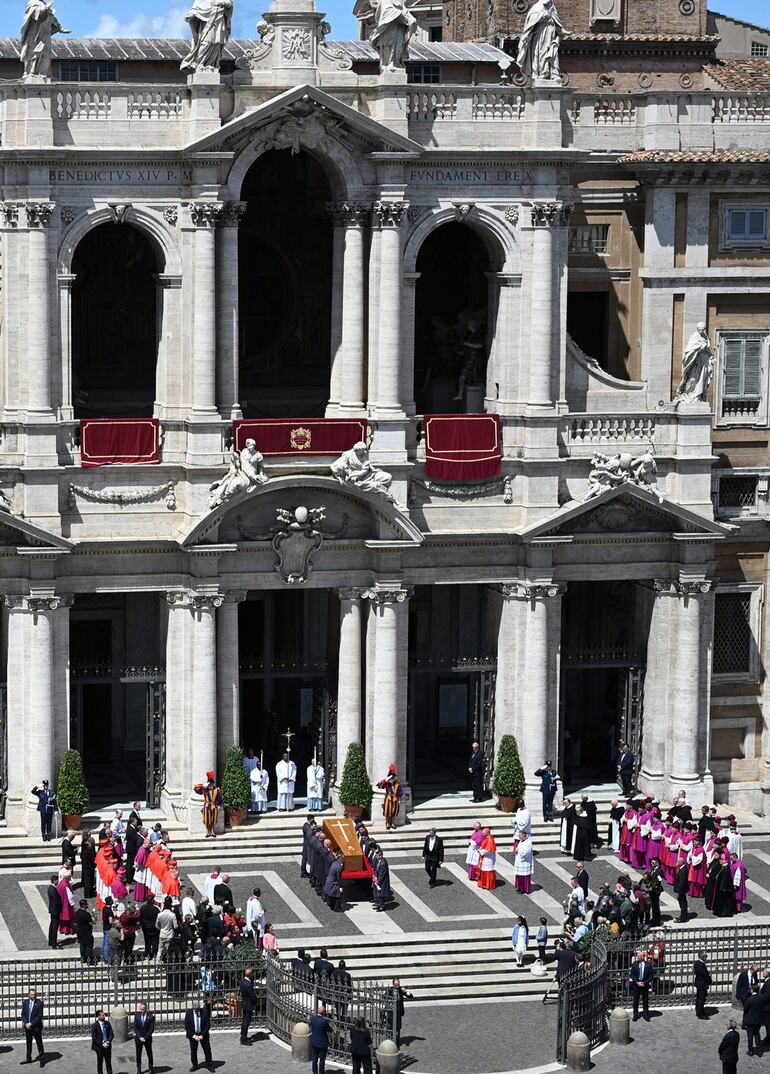 La inhumación tuvo lugar durante una ceremonia íntima presidida por el cardenal camarlengo, Kevin Farrell, en presencia de familiares del primer papa latinoamericano, precisó el Vaticano.