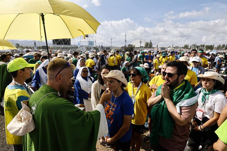 “¡Estamos con la gente joven de Gaza y con los jóvenes de Ucrania! Con todas aquellas tierras ensangrentadas por la guerra”, proclamó desde Tor Vergata, suscitando el aplauso de la muchedumbre.