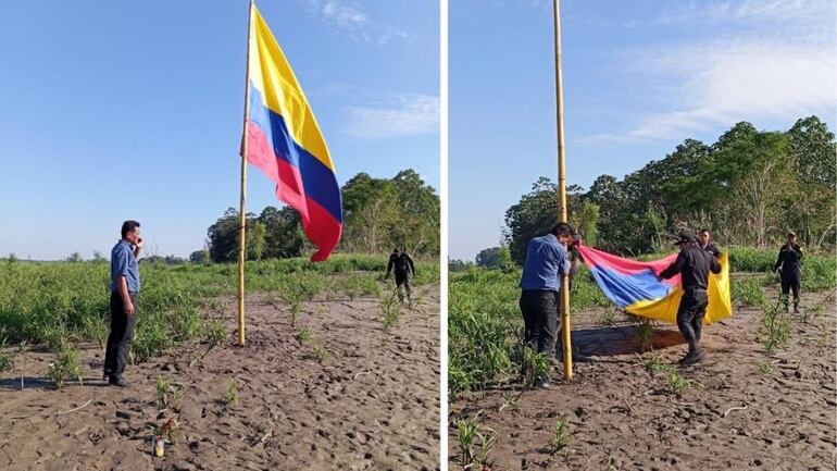 Un representante de la Municipalidad de Santa Rosa de Loreto, Max Ortiz, llegó al lugar para retirar la bandera colombiana en compañía de la Policía Nacional y efectivos de las Fuerzas Armadas de Perú.