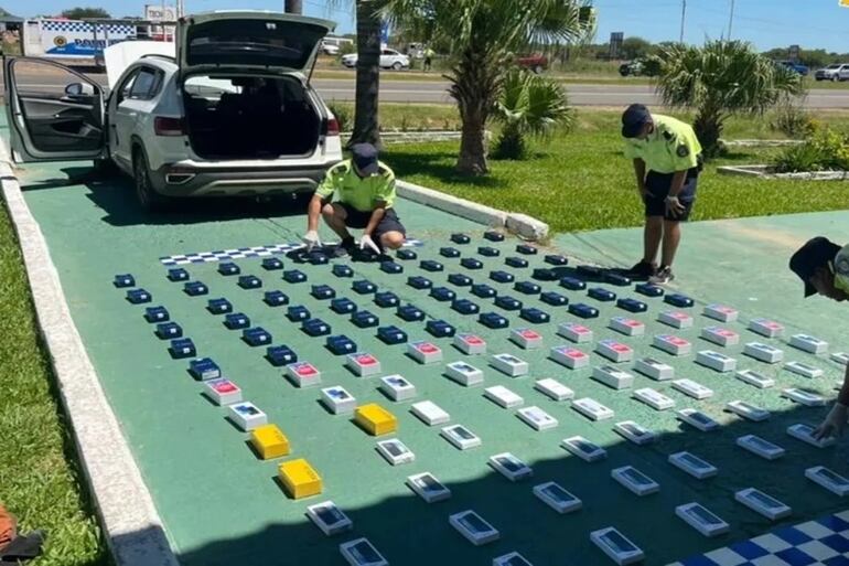 Los agentes detuvieron un auto marca Volkswagen modelo Taos, el cual era ocupado por dos mujeres mayores de edad, una de 54 años y otra de 22 años, oriundas de Mercedes, provincia de Buenos Aires, quienes regresaban de Paraguay con destino a la capital argentina.