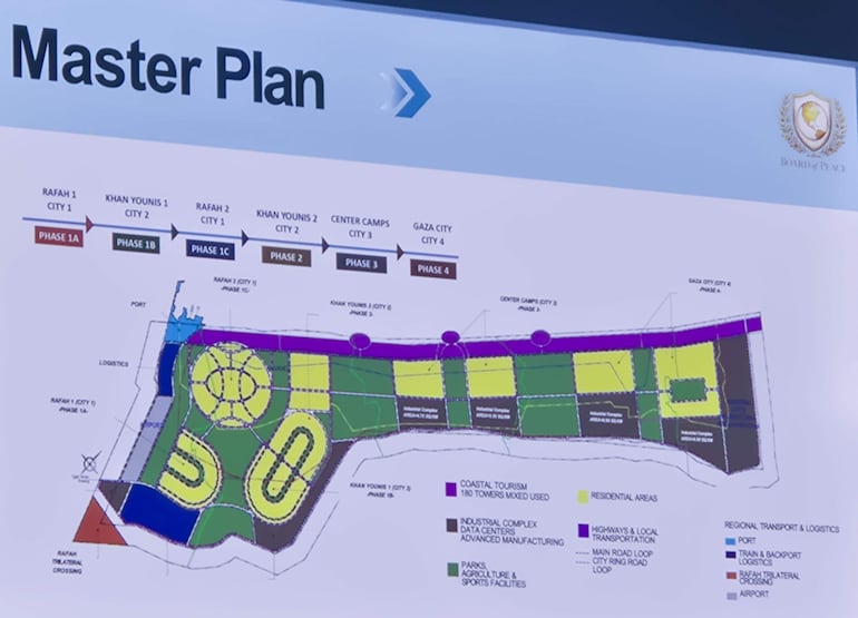Kushner estima que se necesitarían al menos 25.000 millones de dólares de inversión para un proyecto que aún no tiene fecha de inicio, pero que, según el Plan Maestro, se ejecutaría en cuatro fases: comenzando en el sur y avanzando hacia el norte, dejando la ciudad de Gaza como el último punto a reconstruir.