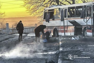 El gobernador de Dnipropetrovsk, Oleksandr Ganzha, afirmó en Telegram que un dron había impactado al lado de un autobús de empresa en el distrito de Pavlograd.