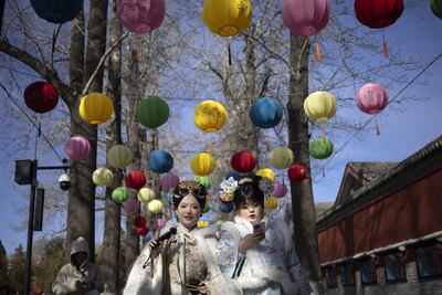 En el área comercial de Longfusi, en la capital, visitantes y residentes acuden a puestos de dulces, juguetes artesanales o pinturas de Año Nuevo, en un ambiente marcado por farolillos rojos y espectáculos folclóricos.