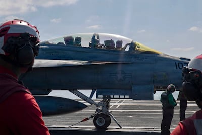 En las imágenes se observan despegue de aviones, composición de fotos de los líderes fundamentalistas de la República Islámica y la flota naval y área de Estados Unidos. También, se lo ve al presidente estadounidense Donald Trump y parte de su equipo presidencial.