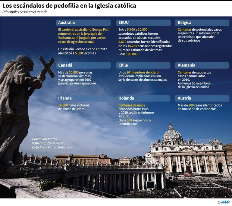 Estas acusaciones no dieron lugar a ninguna pesquisa. La comisión de investigación real que llevó a cabo durante cuatro años esas investigaciones halló que a la Iglesia australiana se le señalaron 4.444 presuntos casos de pederastia. En algunas diócesis, más del 15% de los sacerdotes eran sospechosos de abusos, añadió.